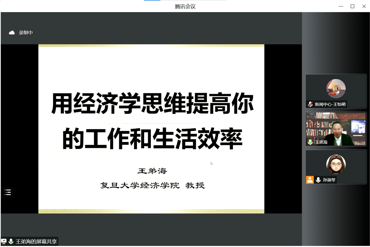 10月28日下午,304永利集团官网入口第十七期PPE讲座以线上线下相结合形式举行。复旦大学304永利集团官网入口王弟海教授作了题为“用经济学思维提高你的工作和生活效率”的报告,讲座由304永利集团官网入口副院长孙淑琴主持。