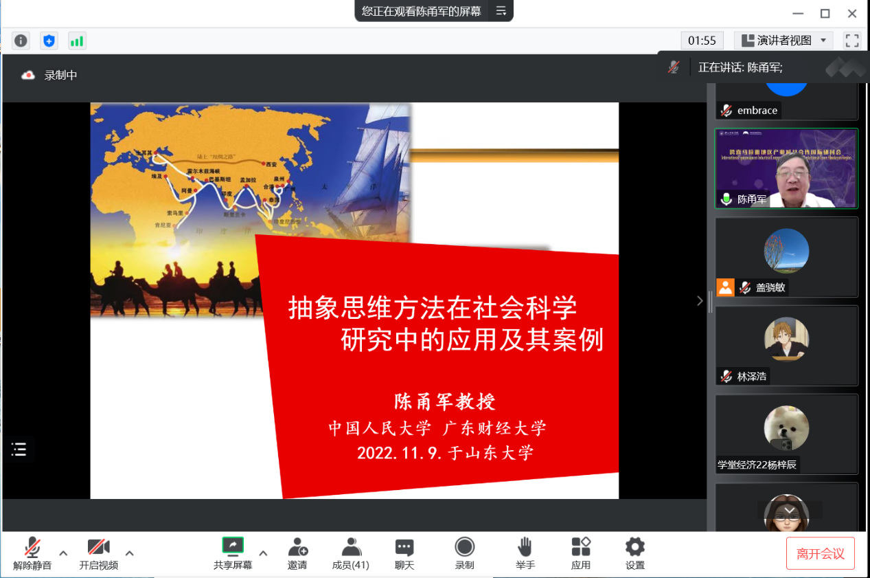 11月9日晚,304永利集团官网入口第二十期PPE讲座以线上形式举行,中国人民大学商学院教授陈甬军作了题为“社会科学研究中的抽象思维方式及案例”的学术报告,304永利集团官网入口教授盖骁敏主持会议。