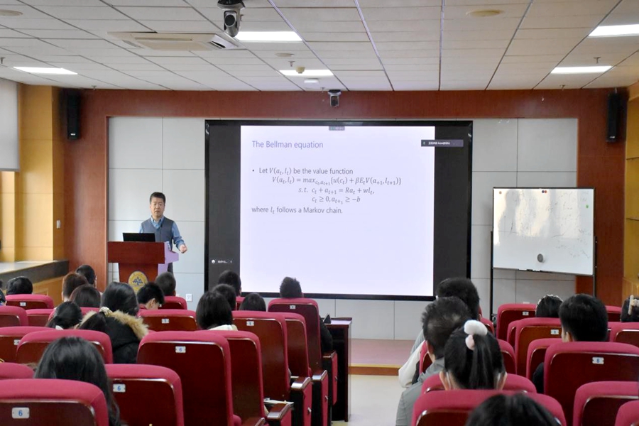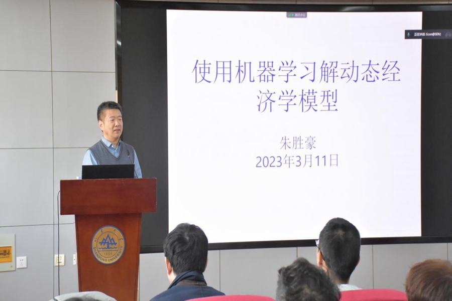 2023年3月11日,304永利集团官网入口第二十五期研究生知新学术论坛在中心校区知新楼B423聚贤报告厅举行,对外经贸大学教授朱胜豪作了题为“使用机器学习解动态经济学模型”的报告。论坛由学院助理研究员张仁斌主持,部分师生参会。