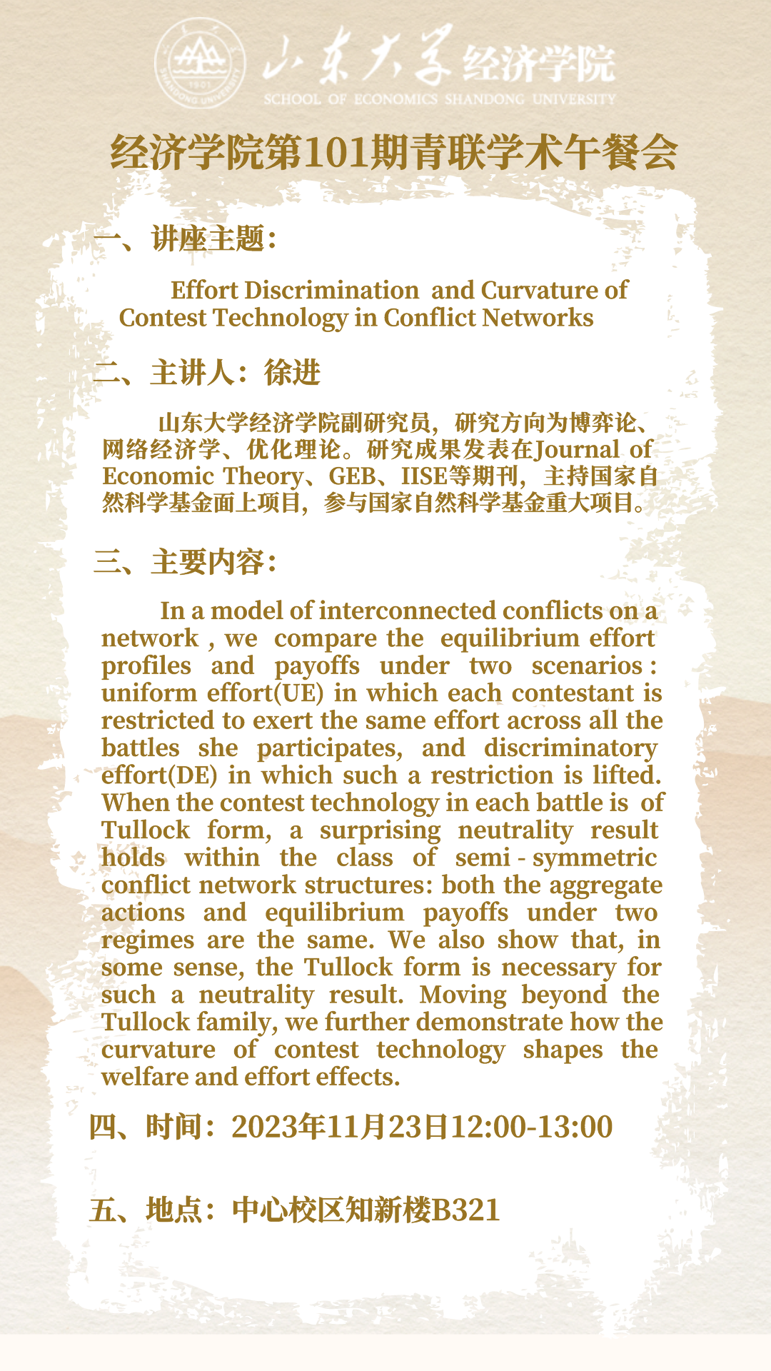 Effort Discrimination and Curvature of Contest Technology in Conflict Networks(304永利集团官网入口第101期青联学术午餐会)