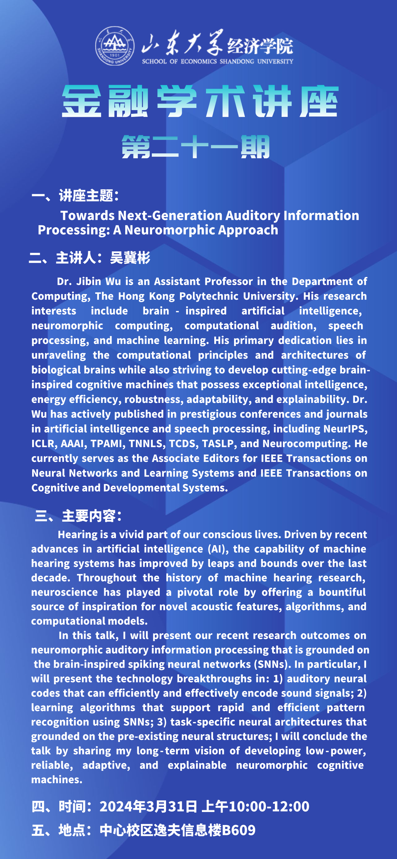 Towards Next-Generation Auditory Information Processing:A Neuromorphic Approach(金融学术讲座第二十一期)